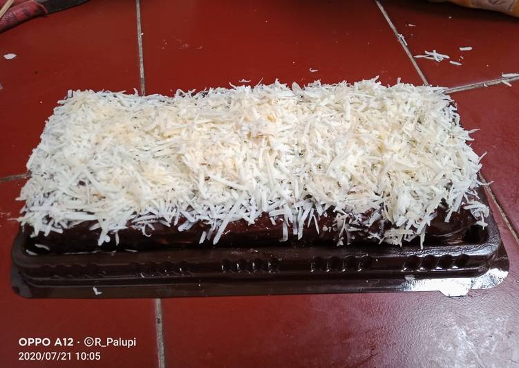 - Masukkan adonan kedalam loyang sisakan sebagian adonan dan kukus..