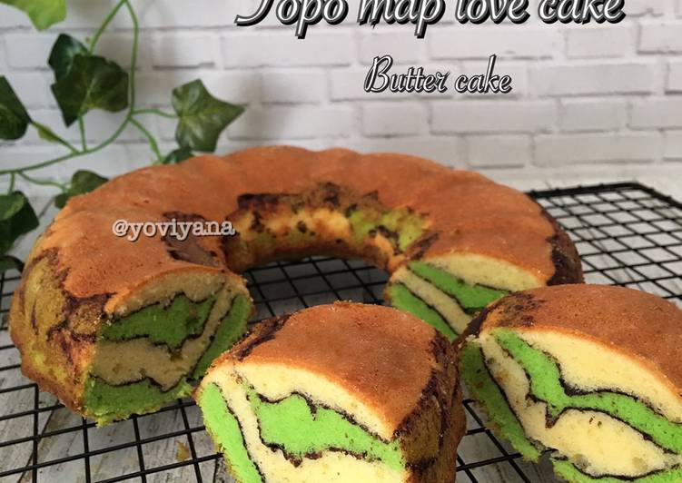 This topo map love cake is really very pretty after being sliced and it is moist and soft with an aroma of matcha flavour in the layers. Add in the egg yolks one at a time, until mixture. This topo map love cake is really very pretty after being sliced and it is moist and soft with an aroma of matcha Beat the butter, sugar and vanilla till light and creamy. You can cook Topo map love cake (butter cake) using 10 ingredients and 5 steps. Here is how you cook it.